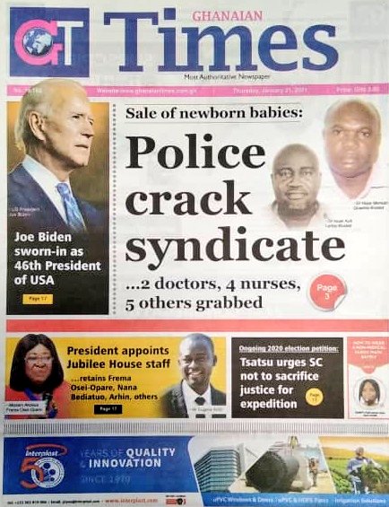 One thought on “Newspaper Headlines: Thursday, January 21, 2021.