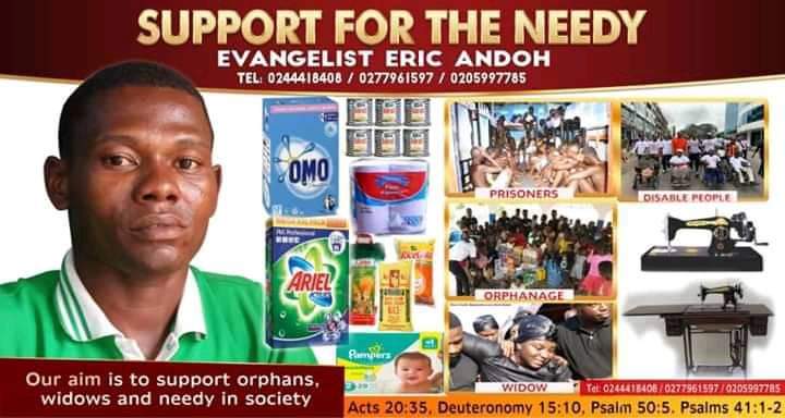 Mr.Eric Andoh whom his entire life is a shoe maker started this Support For The Needy project in 3rd January 2017 purposely to help the orphans,widows,needy and other disadvantaged ones learn enterpreneural skills to better their life in future to enable them not to engage themselves in any immoral activity before they eat or survive.