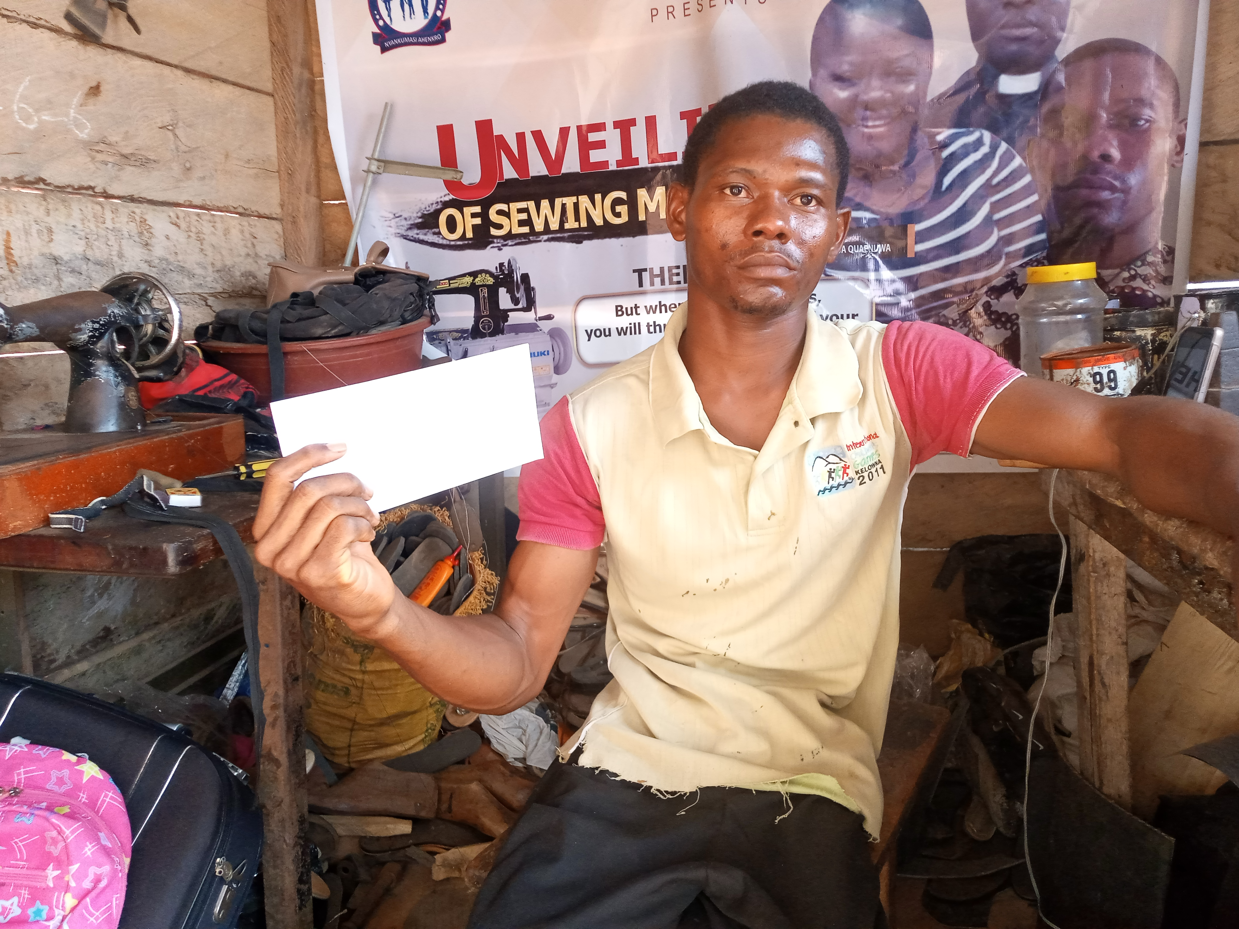 The disabled shoe maker explained how he has suffered with his condition before he has gotten that little job to feed himself hence when he sees way ward, needy children, orphans and widows, he feels pity for them hence, Support for the needy project to solve part of their problems.