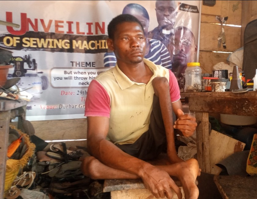 The disabled shoe maker explained how he has suffered with his condition before he has gotten that little job to feed himself hence when he sees way ward, needy children, orphans and widows, he feels pity for them hence, Support for the needy project to solve part of their problems.