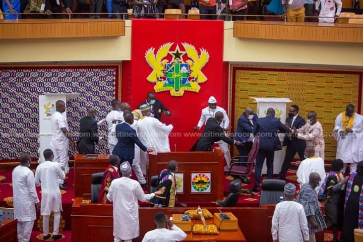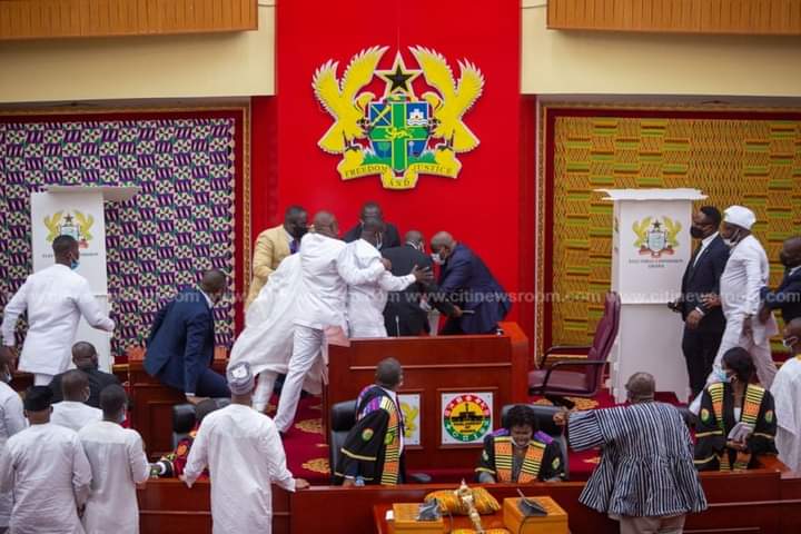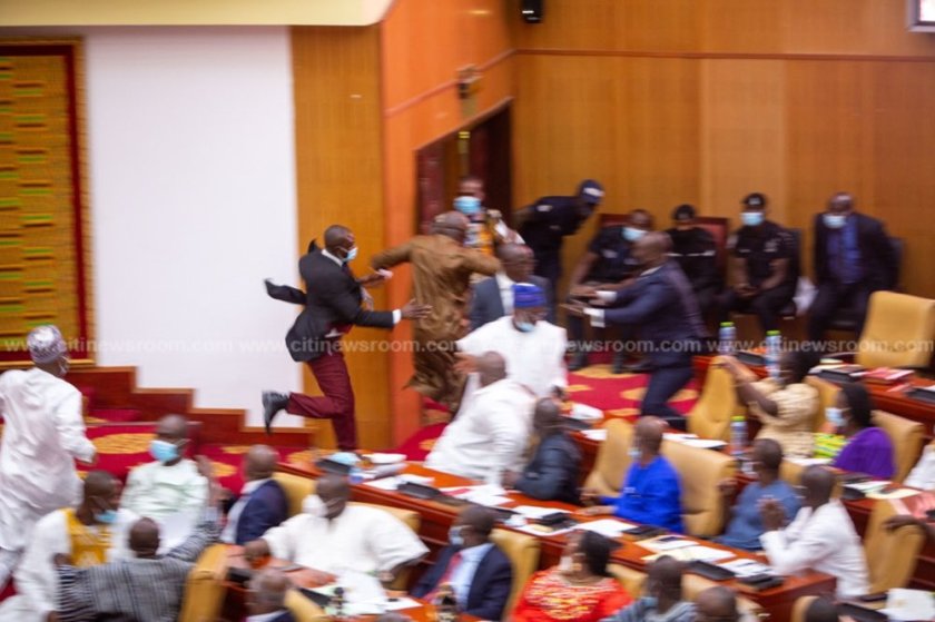 He was quickly chased and accosted at the entrance of the parliamentary chamber and physically challenged by some NDC MPs.