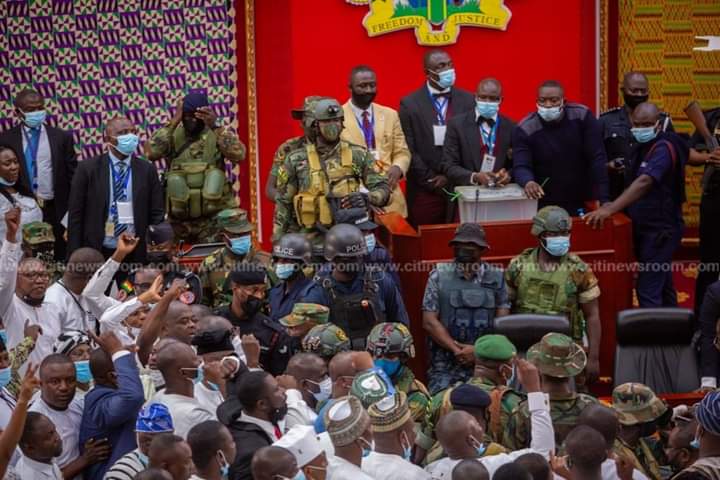 Video: Soldiers storm Ghana’s Parliament over Speaker election