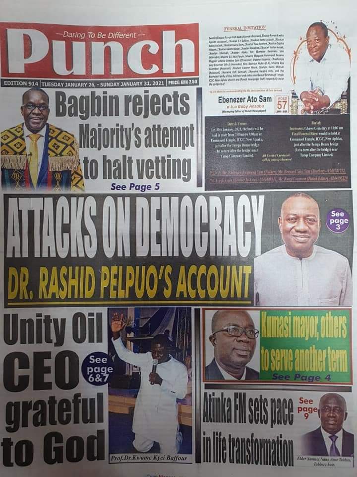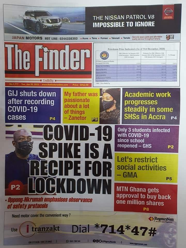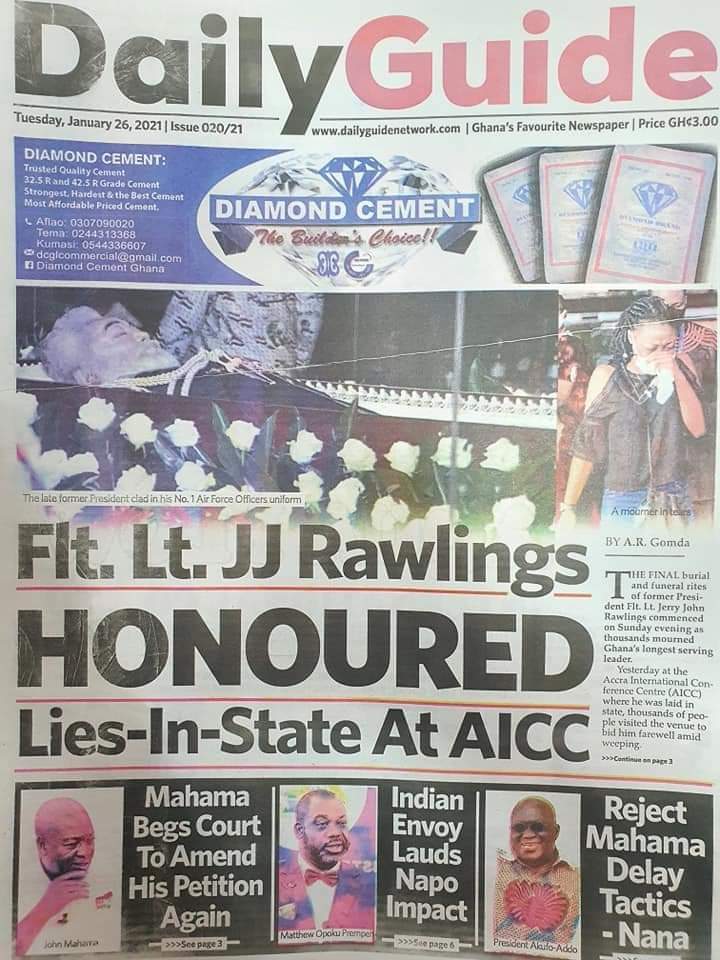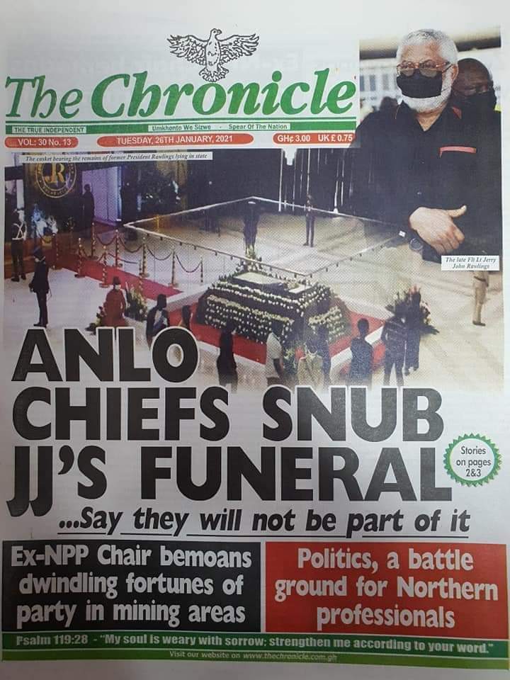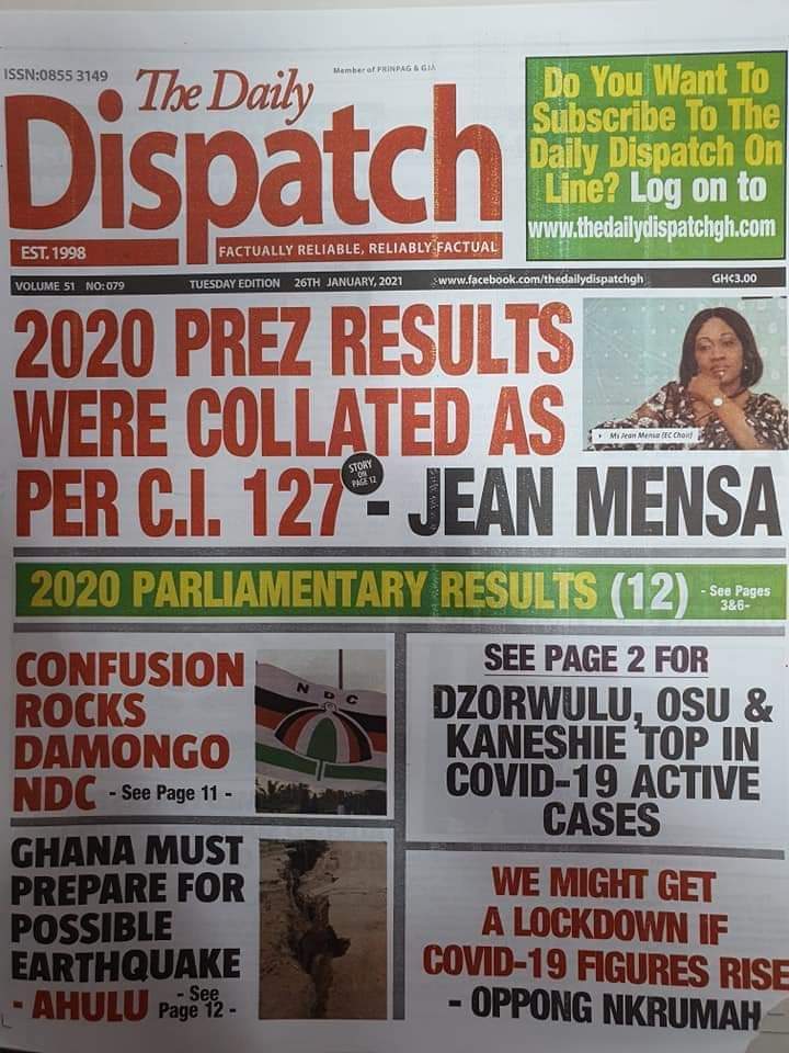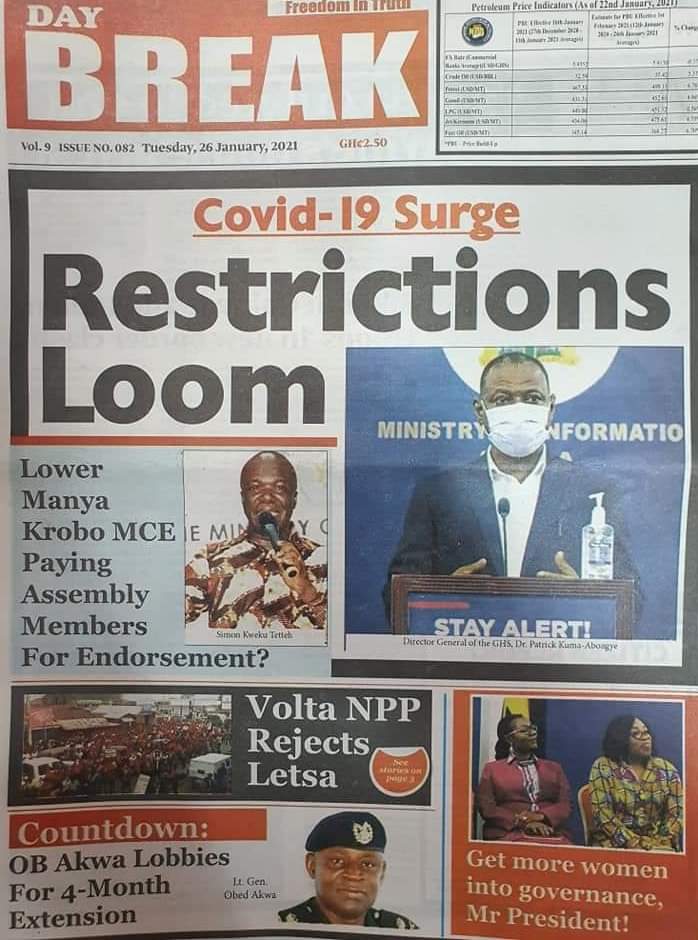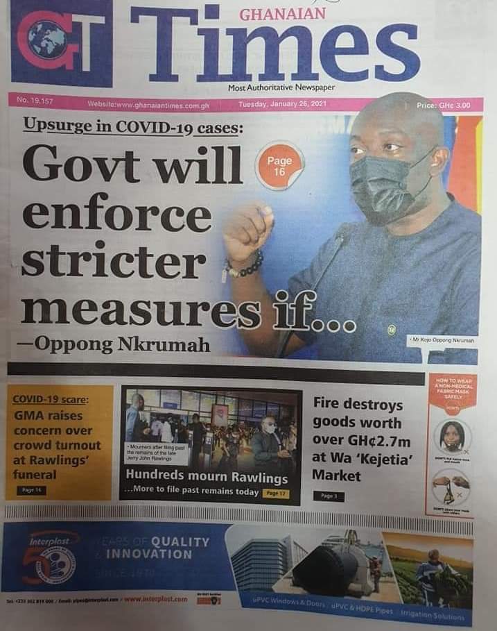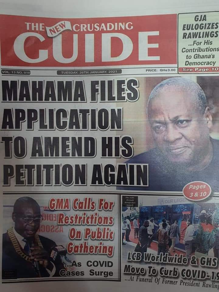 Posted in General News Newspapers headlines 26 January 2021. Tuesday. Posted on January 26, 2021 by Kofi Tutu Source:Gnews.com
